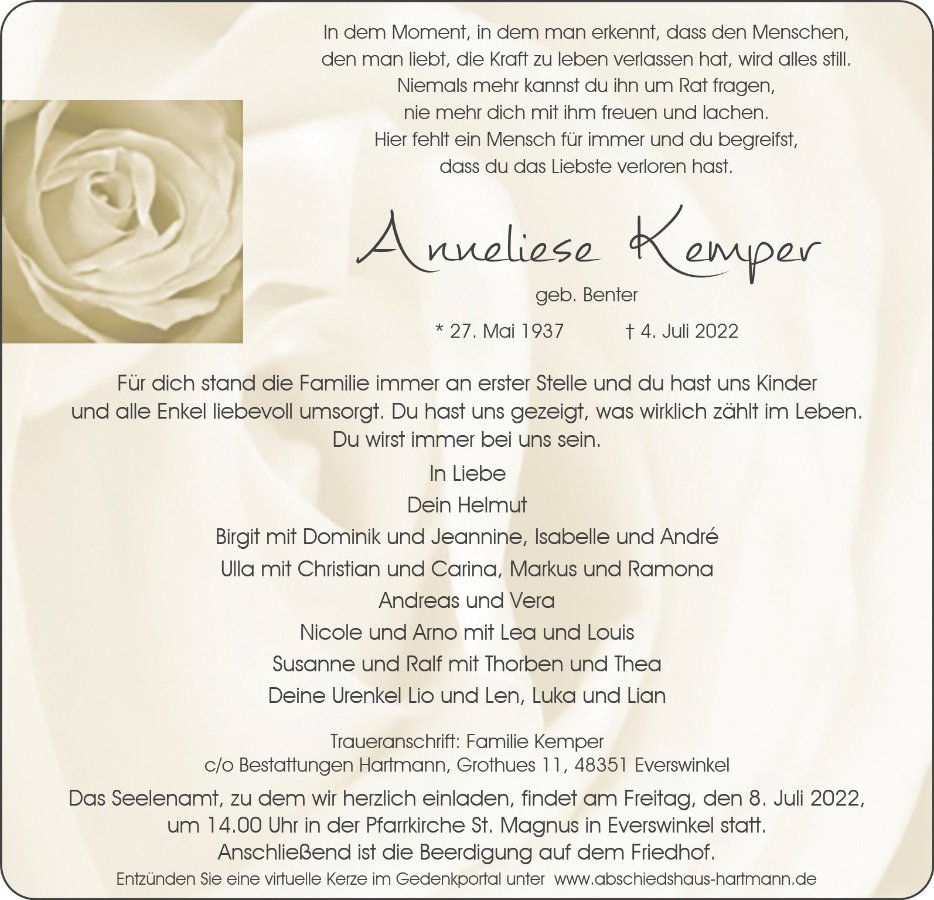 Sprechen Sie im Kondolenzbuch den Hinterbliebenen Ihr Beileid aus und teilen Sie persönliche Gedanken und Erinnerungen mit anderen.