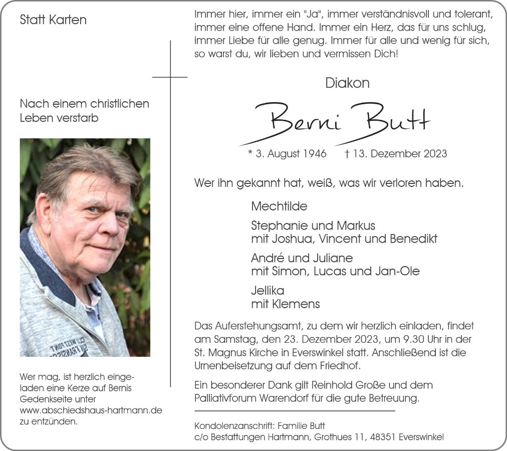 Liebe Familie Butt/Schürkamp