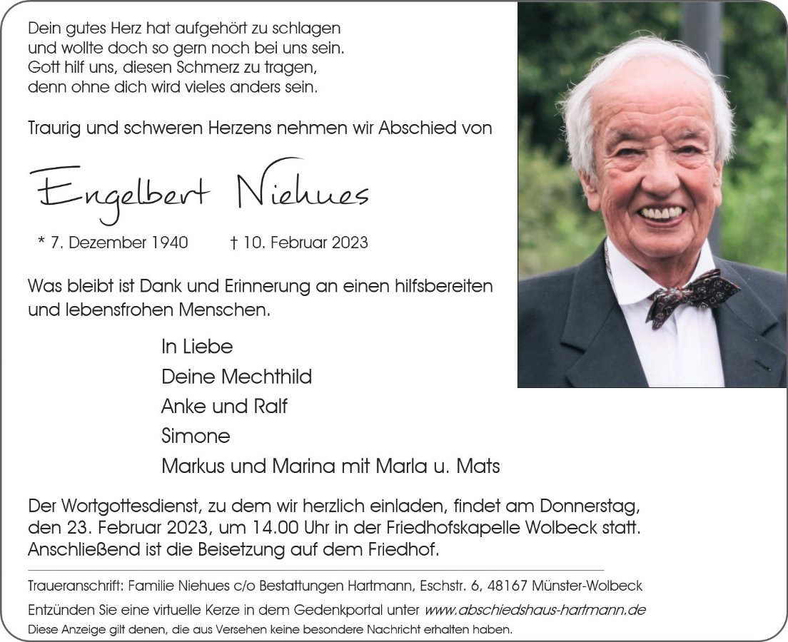 gestorben am 10. Februar 2023 in Münster-Hiltrup