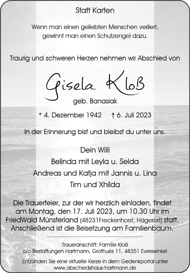 du begleitest uns jeden Tag, in unserem Herzen und in all den schönen Erinnerungen an dich!