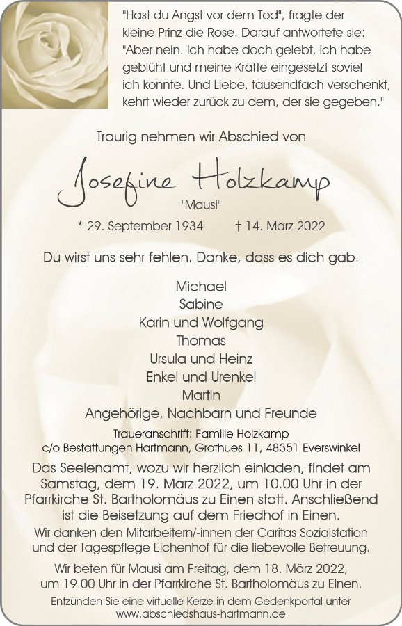 gestorben am 14. März 2022 in Warendorf-Einen