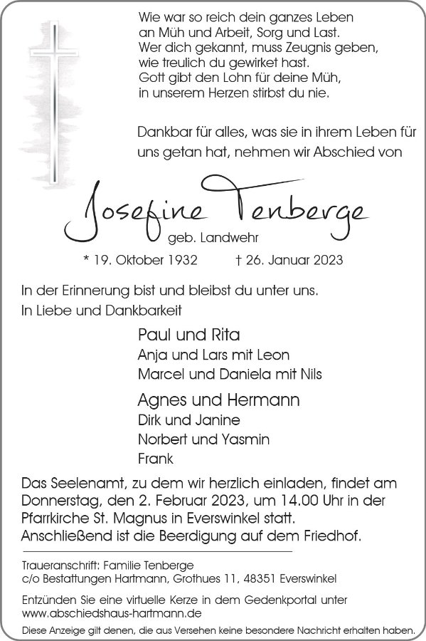 Josefine Tenberge geb. Landwehr