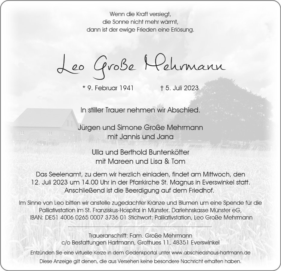 Liebe Ulla, lieber Jürgen, wir möchten Euch und Euren Familien auf diesem Weg unsere Anteilnahme am Tod Eures Vaters Leo aussprechen.