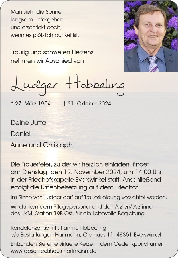 Ludger Hobbelinggestorben am 31. Oktober 2024