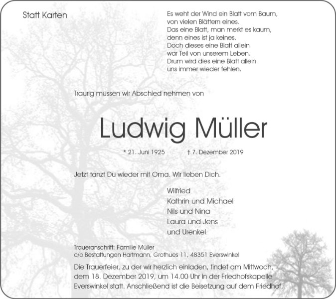 Trauerfeier mit anschl. Urnenbeisetzung, Everswinkel