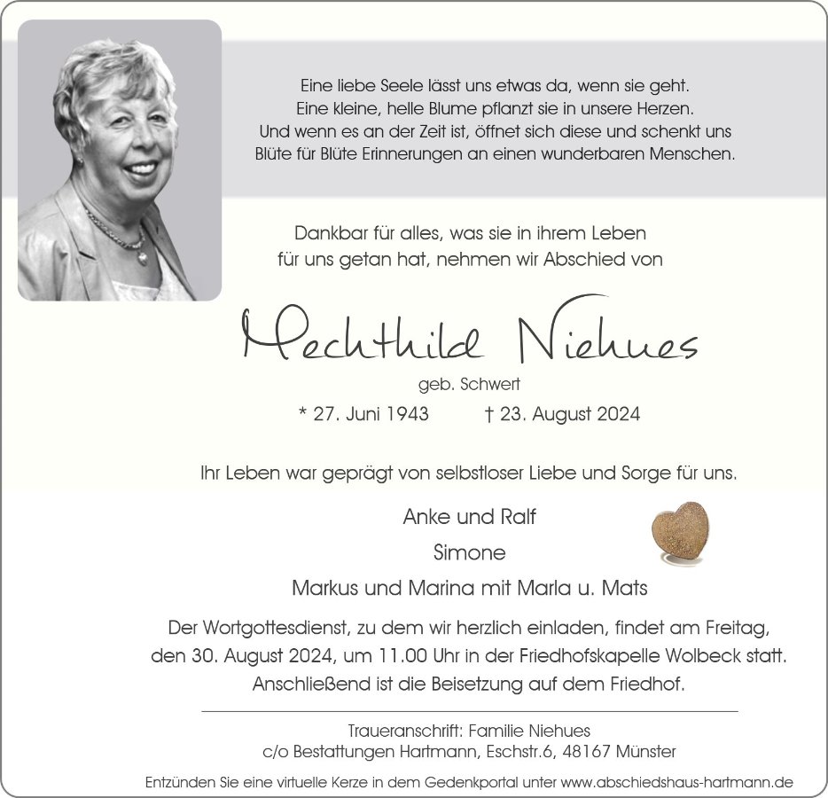 Wir möchten Euch zu Mechthilds Tod unser tiefes