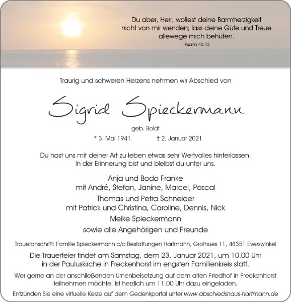 Sehen Sie hier die Termine der Abschieds- und Trauerfeierlichkeiten.